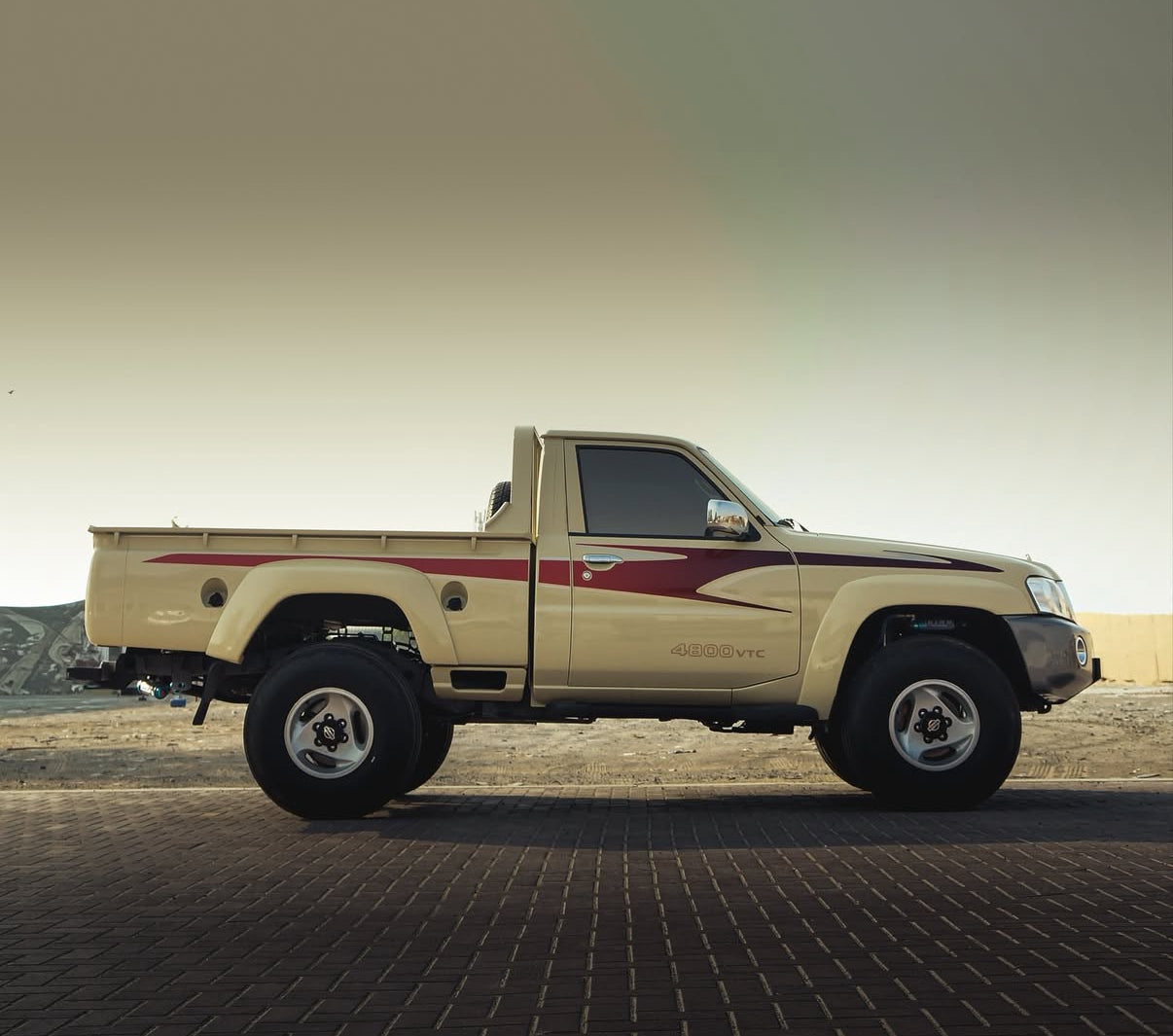 Wide Red Safari Side Stripe Sticker Nissan Patrol Y61 VTC GU Beige (Pickup)
